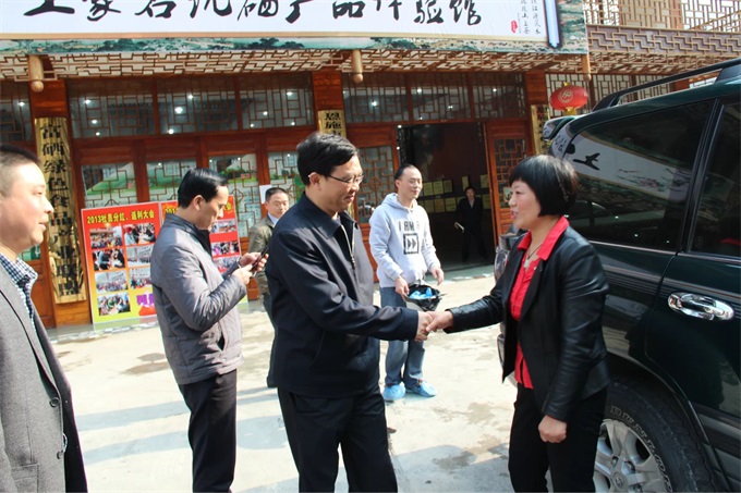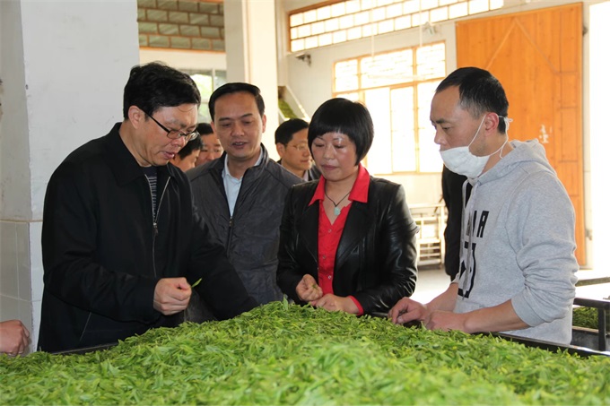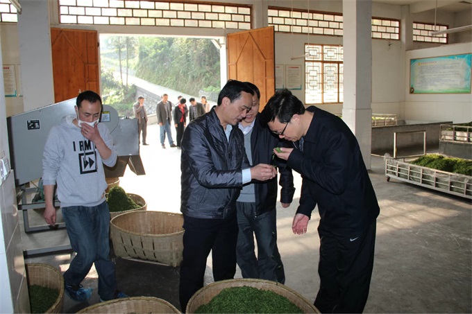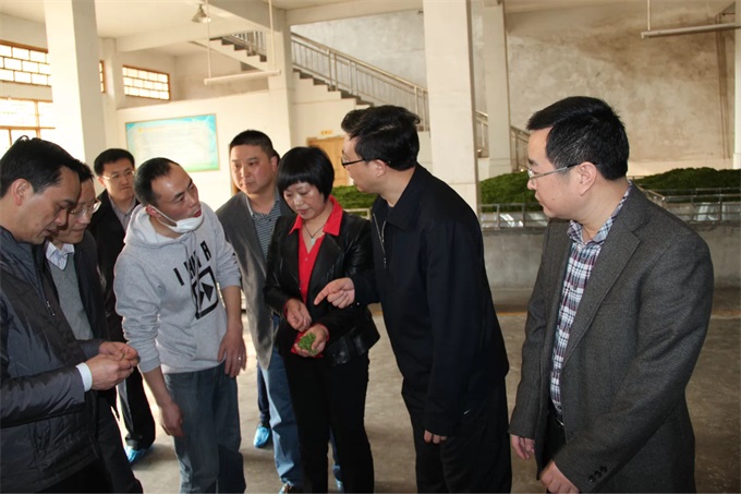 2014年4月3日,阳光明媚,清江河畔花枝茶楼一片欢声笑语。由恩施州委王书记、李市长、向书记等一行领导,驱车到花枝茶公司走访、察看春茶生产加工、销售情况,特别是对千亿qy88国际官网入口专业合作社进行的深入细致地了解,对花枝茶公司经营模式,带领农民共同发展经济,保障茶农利益给予了充分肯定。最后州委王书记品尝花枝茶后,风趣地说:这杯茶好,我用自己的杯中带走了............